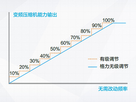 輸出能力無級調(diào)節(jié),直流變頻壓縮機(jī)能夠在20Hz~120Hz范圍內(nèi)做到數(shù)字化無級能量調(diào)節(jié)。