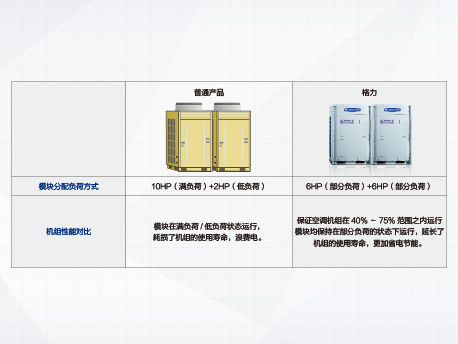 空調(diào)在40%~75%負(fù)荷運行時,耗電量最低,GMV5能智能分配各模塊輸出能力,
