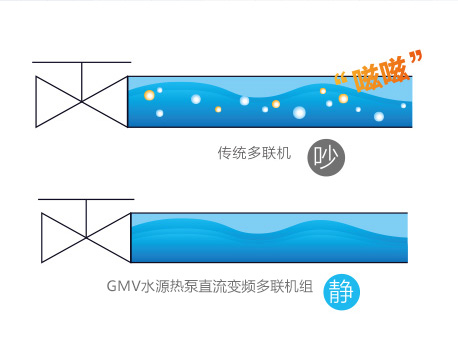 傳統(tǒng)機(jī)組在冷媒流量調(diào)節(jié)時會發(fā)出類似“茲茲”的液流噪音,GMV水源熱泵直流變頻