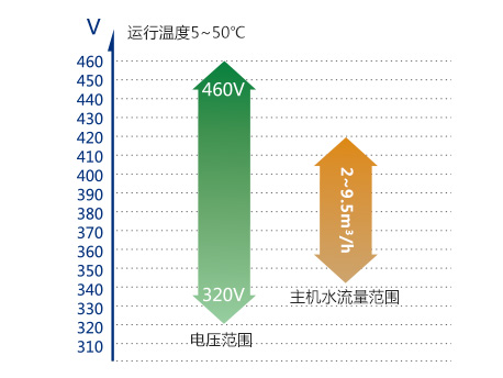 電壓范圍提升至320V-460V,遠(yuǎn)超342V-420V的國家標(biāo)準(zhǔn),輕松應(yīng)對電壓不穩(wěn)問題。