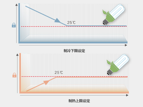 通過(guò)線控器設(shè)定制冷下限溫度與制熱上限溫度,節(jié)約能源避免用電浪費(fèi)。